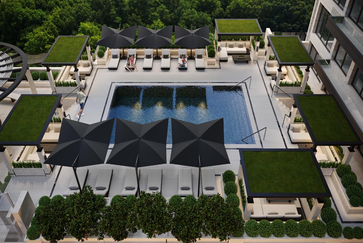 Suites range from Studio to Three Bedrooms. The community consists of two buildings - the East Tower being 14 storeys and the West Tower at 28 storeys and a North and South Podium at 9 storeys.